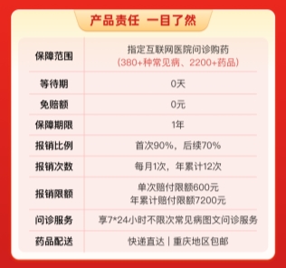 30元/人/年,就能拥有7200元互联网门诊险额度