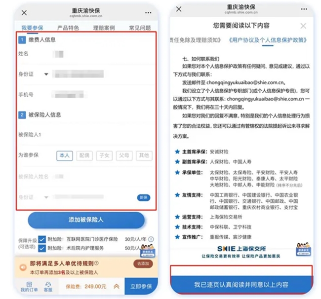需在“渝快保”投保页面勾选"互联网医院门诊医疗保险"加油包,价格为30元/人/年。