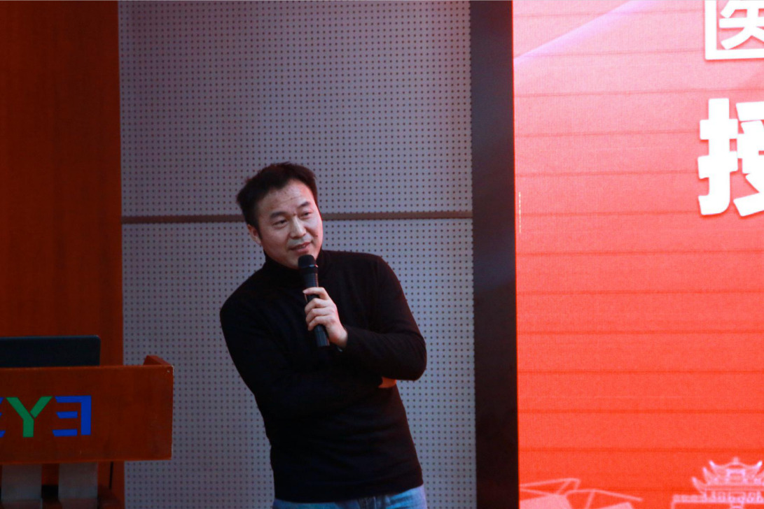 (长沙市科技局社会发展处蒋泰文处长发表讲话,希望爱尔眼科和中南大学计算机学院的深入合作,能够进一步“抢占先机”,推动眼科智慧医疗的发展)