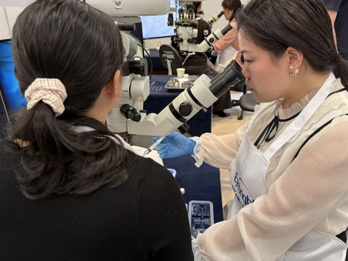 白内障技能培训专场由鲍永珍教授、陈伟蓉教授、范玮教授、高云仙教授、吴文捷教授、徐雯教授、张铭志教授(按姓名拼音首字母顺序排序)担任负责人,汇聚国内顶尖专家。爱博诺德公司提供了普诺明®高次非球面人工晶状体系列、普诺特®预装式人工晶状体系列、利尔美®手术刀、晶友®粘弹剂等物资支持,学员们在带教专家的指导下,每一步操作都感受到了器械的流畅手感和操作要领。此次培训专场极大地提升了学员对手术中的信心与完成度,实现了从理论认知到动手实操的跨越。